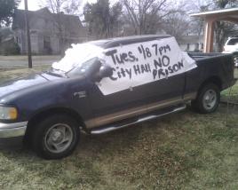 According to a source in Fannin County, the Leonard City Council has again delayed a vote on the private "faith-based" prison proposed by Correctional Concepts, Inc. The proposal has been met with considerable opposition from community members concerned that the prison won't help the city's economy and that constitutional questions may prevent the prison from ever opening. At this month's meeting, a number of community members spoke against the prison proposal. Here is a visual representation of some of the opposition the prison proposal has evoked: